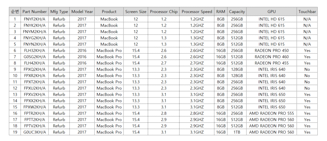 맥북(프로) 리퍼 제품 판매 합니다.